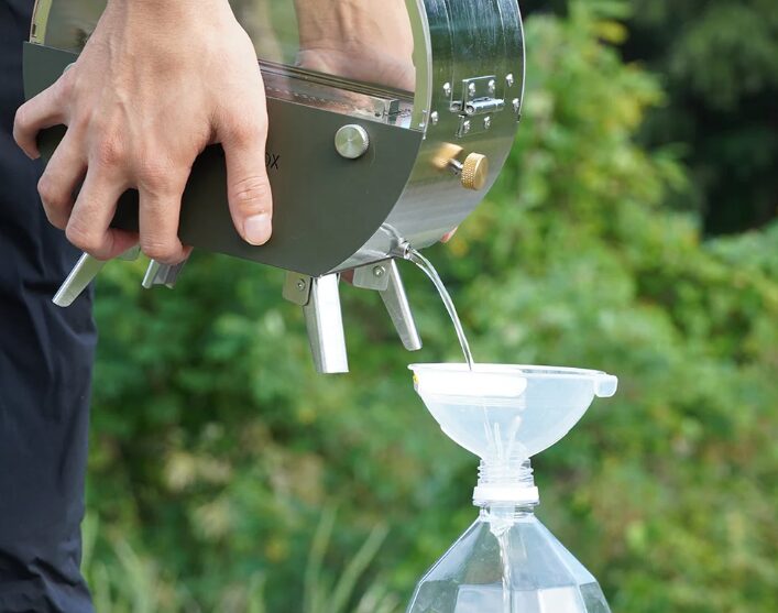 ペットボトルより、トラギアの燃料ボトルのほうが再利用時そそぎやすいのでおすすめ!